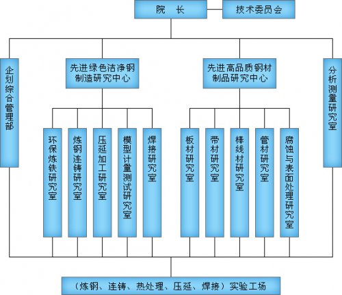 鋼研院分為5個(gè)產(chǎn)品研究室(板材、帶材、管材、棒線(xiàn)材、腐蝕和表面處理)和5個(gè)工藝研究室(環(huán)保與煉鐵、煉鋼連鑄、壓延加工、模型計(jì)量測(cè)試、焊接),分析測(cè)量研究室和企劃綜合管理部。每個(gè)研究室都有研究室經(jīng)理、高級(jí)研究員和研究員。 鋼研院的員工總數(shù)到2008年底將達(dá)到150人,2009年將達(dá)到250人,5年后將達(dá)到500人。 鋼研院每年都會(huì)邀請(qǐng)世界鋼鐵發(fā)達(dá)國(guó)家的客座教授、訪(fǎng)問(wèn)學(xué)者來(lái)研究院從事研究工作或講學(xué),以提高廣大研究人員的能力。 鋼研院技術(shù)委員會(huì)由3位中國(guó)工程院院士、2位教授和6位教授級(jí)高工組成,委員會(huì)成員來(lái)自江蘇沙鋼集團(tuán)、中國(guó)金屬學(xué)會(huì)、鋼鐵研究總院、東南大學(xué)、東北大學(xué)、北京科技大學(xué)以及江蘇冶金工業(yè)協(xié)會(huì)。鋼研院每年舉行1~2次技術(shù)委員會(huì)會(huì)議,協(xié)助院長(zhǎng)為研究院研究開(kāi)發(fā)的戰(zhàn)略方向、重大技術(shù)問(wèn)題及重大項(xiàng)目提供咨詢(xún)、論證和評(píng)估。